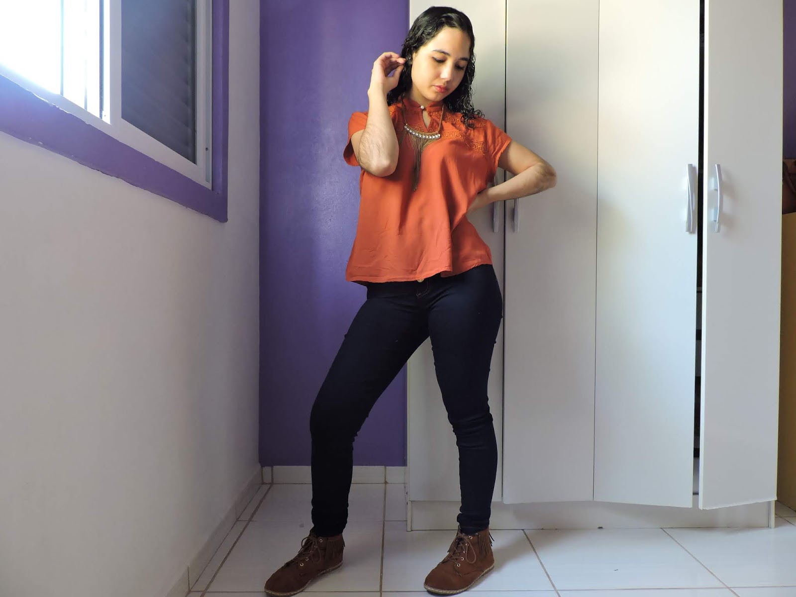 Eu sempre deixo o meu cabelo solto (como vocês já puderam notar). Esse colar é super estiloso, pena que não é meu, eu ia usar sempre (claro que eu posso sempre pegar da minha mãe kkk). A gente somos sempre assim, eu pego as coisas delas, e ela pega as minhas coisas.